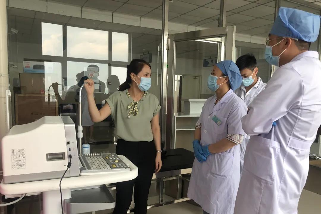 倍肯科技“两癌”项目组工作人员讲解设备